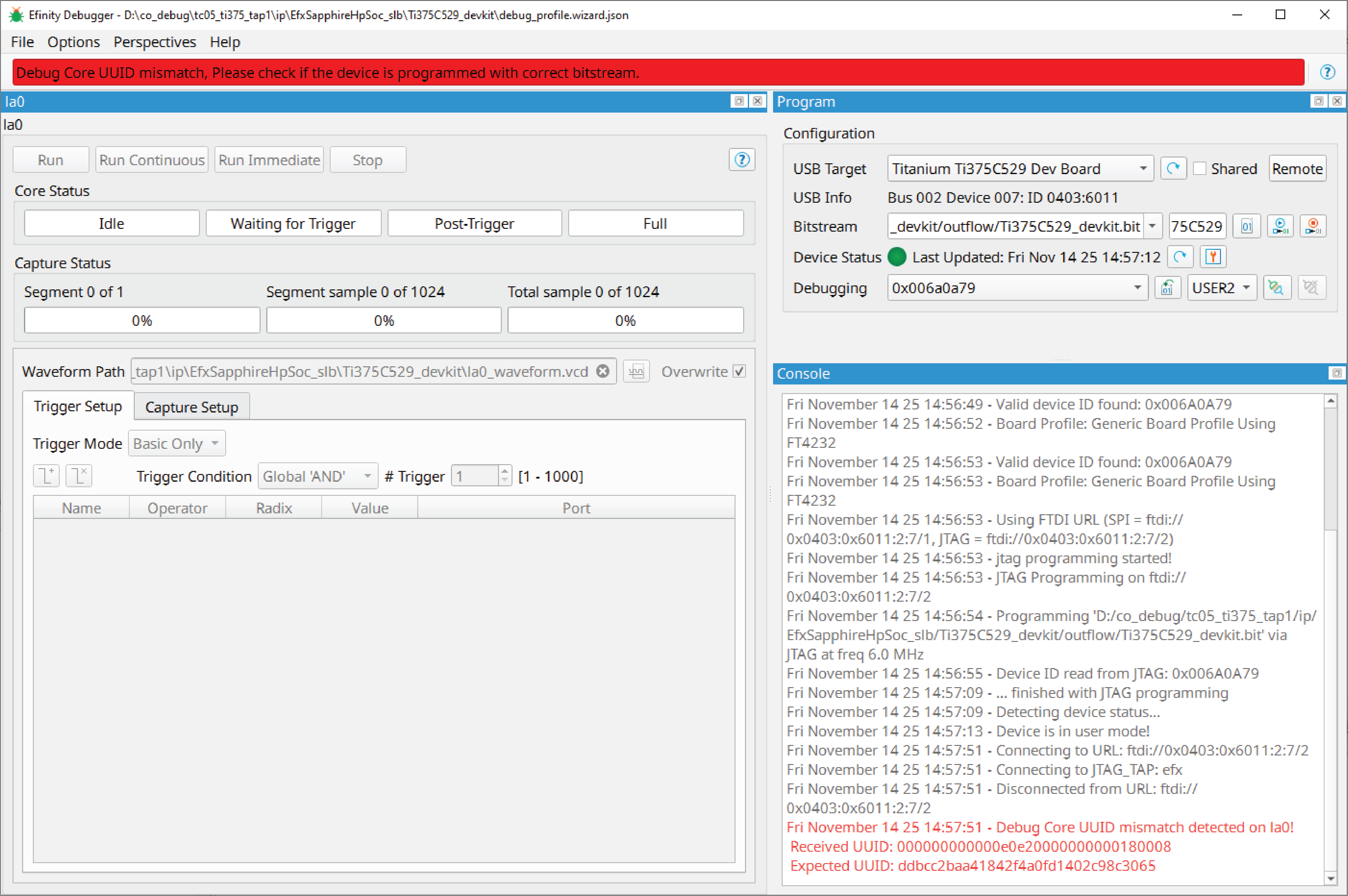 Debug Core UUID Mismatch
