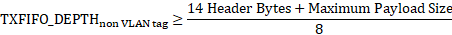 TXFIFO_DEPTH to store the full TX packet. The depth of TXFIFO must
